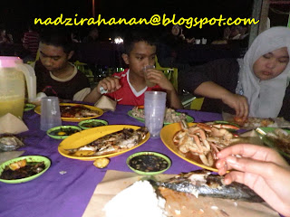so, pas en husben blk jek, trus siap2 nk blk tangga batu smula sbb dah janji nk gi makan2 kat luar..& guess kat mner my family nk ajak mkn...?? ikan bakar lagi..??? xperla, layan jek... spai tangga batu dah nk dkt marghrib, so pas solat kitaorg trus gerak....ayah call member die utk tnye tempat mner yg best, we all follow dr blakang jek...